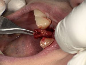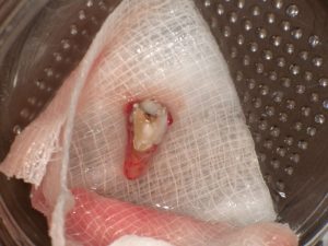 2026.2 68歳女性。左上側切歯歯根破折。まず、折れた歯を抜歯。